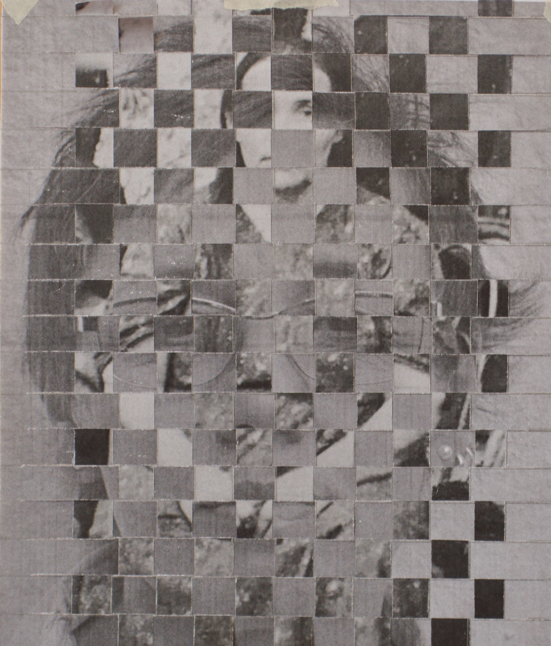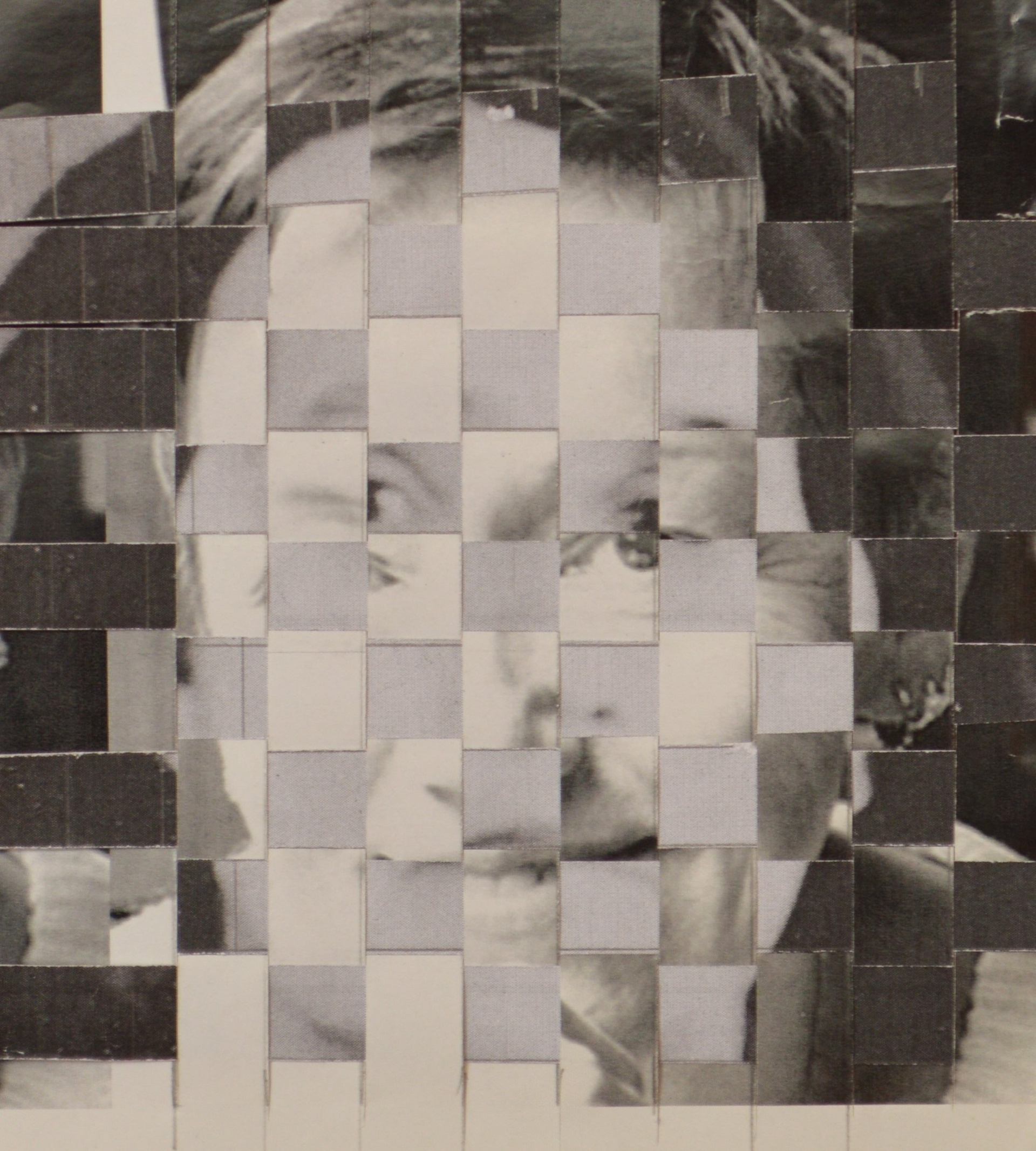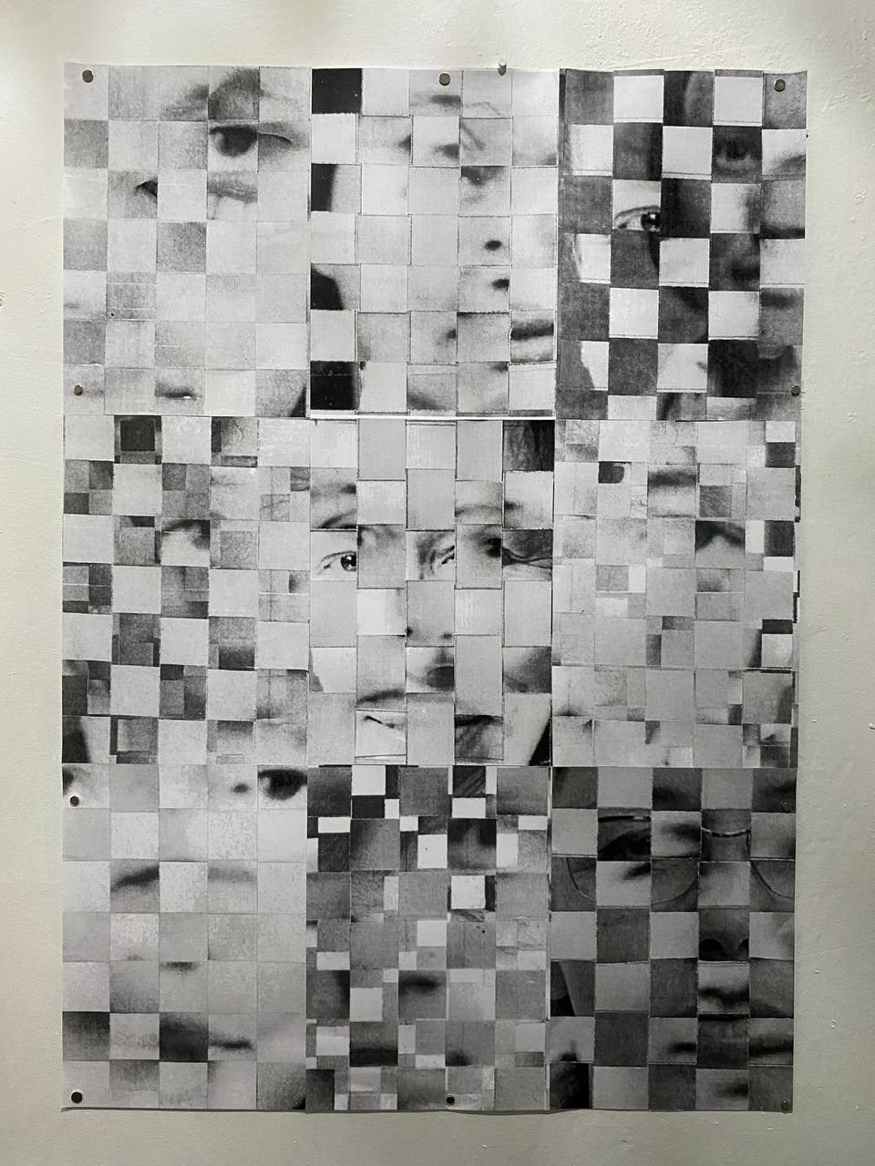 Кроме меня в проекте напечатанные лица мамы и две бабушки идентичность которых я препарировала буквально разрезая и сплетая в коллаж.