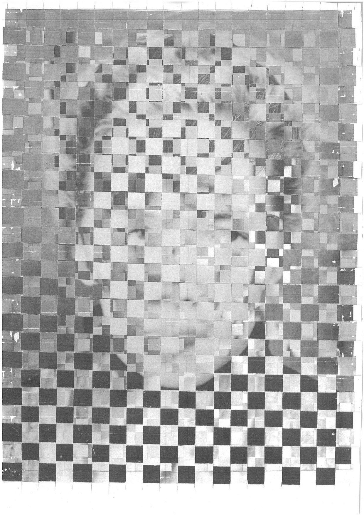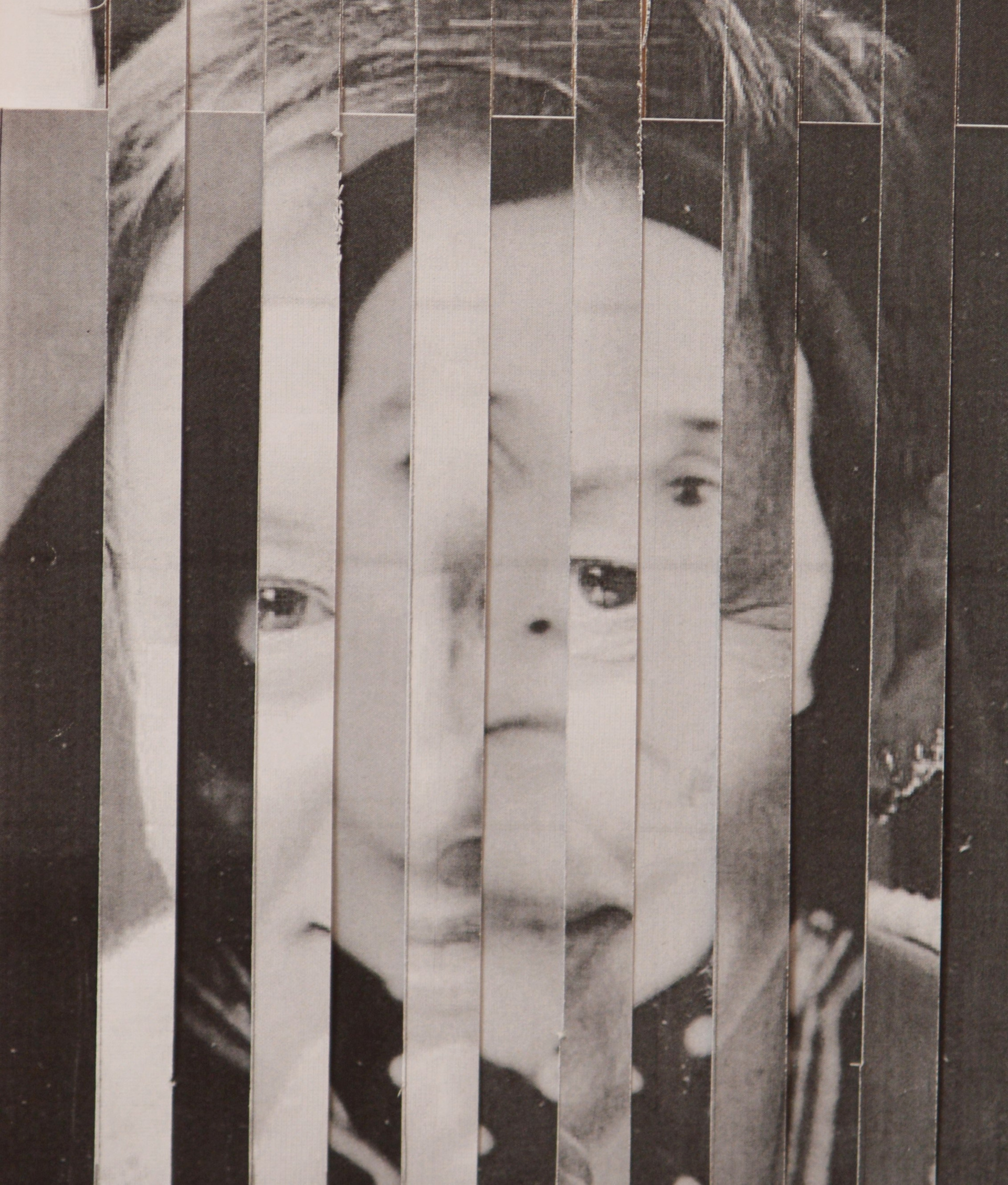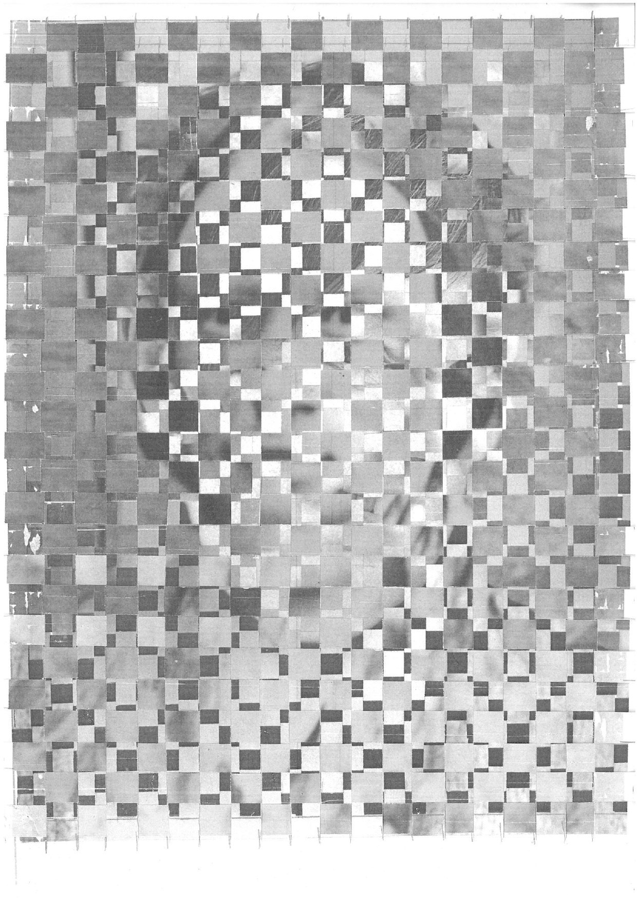 Кроме меня в проекте напечатанные лица мамы и две бабушки идентичность которых я препарировала буквально разрезая и сплетая в коллаж.